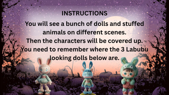 Players are challenged to spot and remember where three sneaky Labubu-style dolls are hiding among a bunch of other toys and stuffed animals. Just when they think they’ve got it — poof! — the dolls vanish, and the real challenge begins: can they remember where they were?